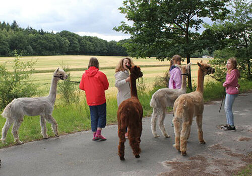 Wir machen uns zusammen mit den Alpakas – die ihr auch selber an der Leine führen dürft – auf eine kleine Tour durch den Teutoburger Wald. Zwischendurch gibt es leckere Snacks inmitten von Alpakas und wenn ihr wollt dürft ihr die Tiere auch aus der Hand füttern.