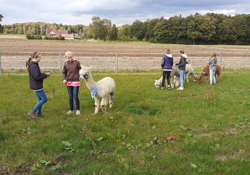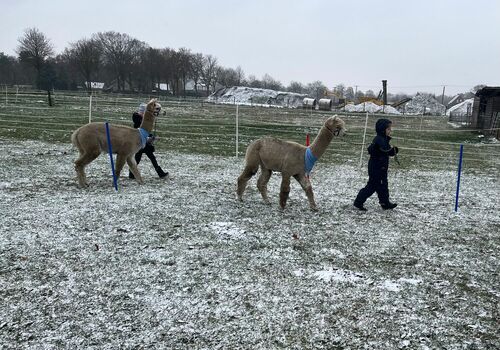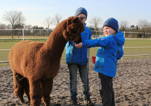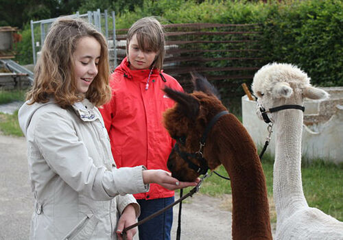 Bei der hautnahen Begegnung spürt ihr die Außergewöhnlichkeit der Wolle. Gemeinsam fordern wir bei kleinen Geschicklichkeitsübungen nicht nur das Können der Alpakas heraus. Zwischendurch genießen wir sogar ein Picknick in ihrer Mitte.