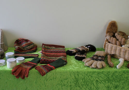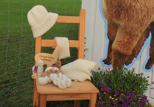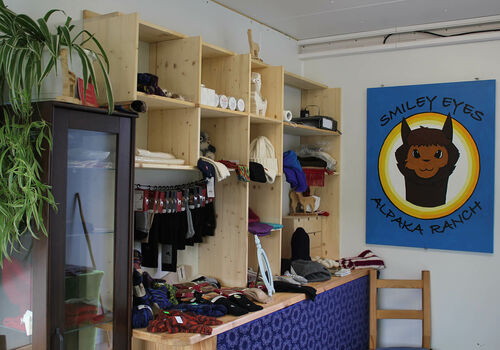Wunderschöne warme Schals, Mützen, Handschuhe, Socken und vieles mehr aus Alpaka-Wolle in Handarbeit gefertigt, finden Sie bei uns auf der Smiley Eyes Alpaka Ranch. Zusätzlich haben wir verschiedene Kosmetik- und Pflegeprodukte wie beispielsweise Seifen, Cremes oder Peelings mit Alpaka-Kreatin in unserem Shop-Sortiment. Für alle Alpaka-Fans gibt es zudem einige "Merchandise"-Artikel wie Postkarten, Kuscheltiere und vieles mehr zu entdecken. Unser gemütlicher Alpaka-Shop lädt zum stöbern ein.