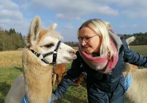 Bei diesem Spaziergang merkt man aber, dass ein Alpaka seinen eigenen Kopf hat. Von sanftmütig und geduldig bis stolz, neugierig oder lebensfroh.